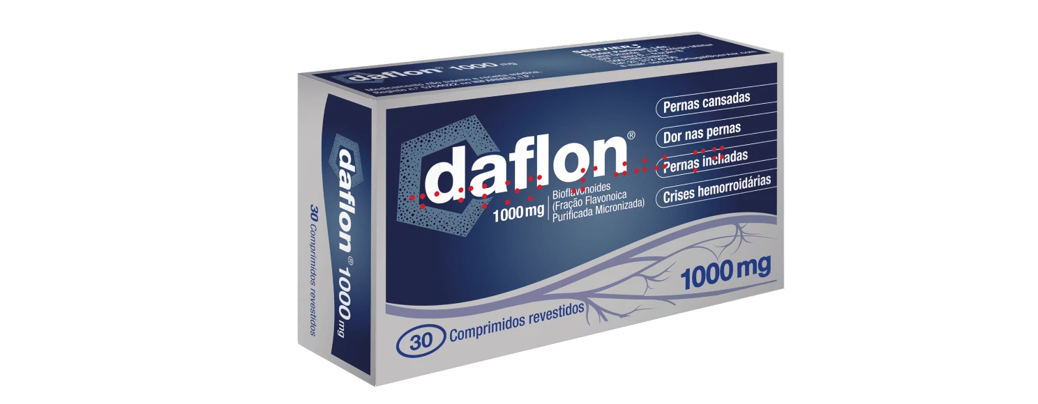 PROPRIEDADES FARMACOLÓGICAS: Daflon® 1000 exerce uma ação sobre o sistema vascular de retorno: ao nível das veias, diminui a distensibilidade venosa e reduz a estase venosa; ao nível da microcirculação, normaliza a permeabilidade capilar e reforça a resistência capilar. APRESENTAÇÃO: Caixas de 30 e 60 comprimidos revestidos por película.